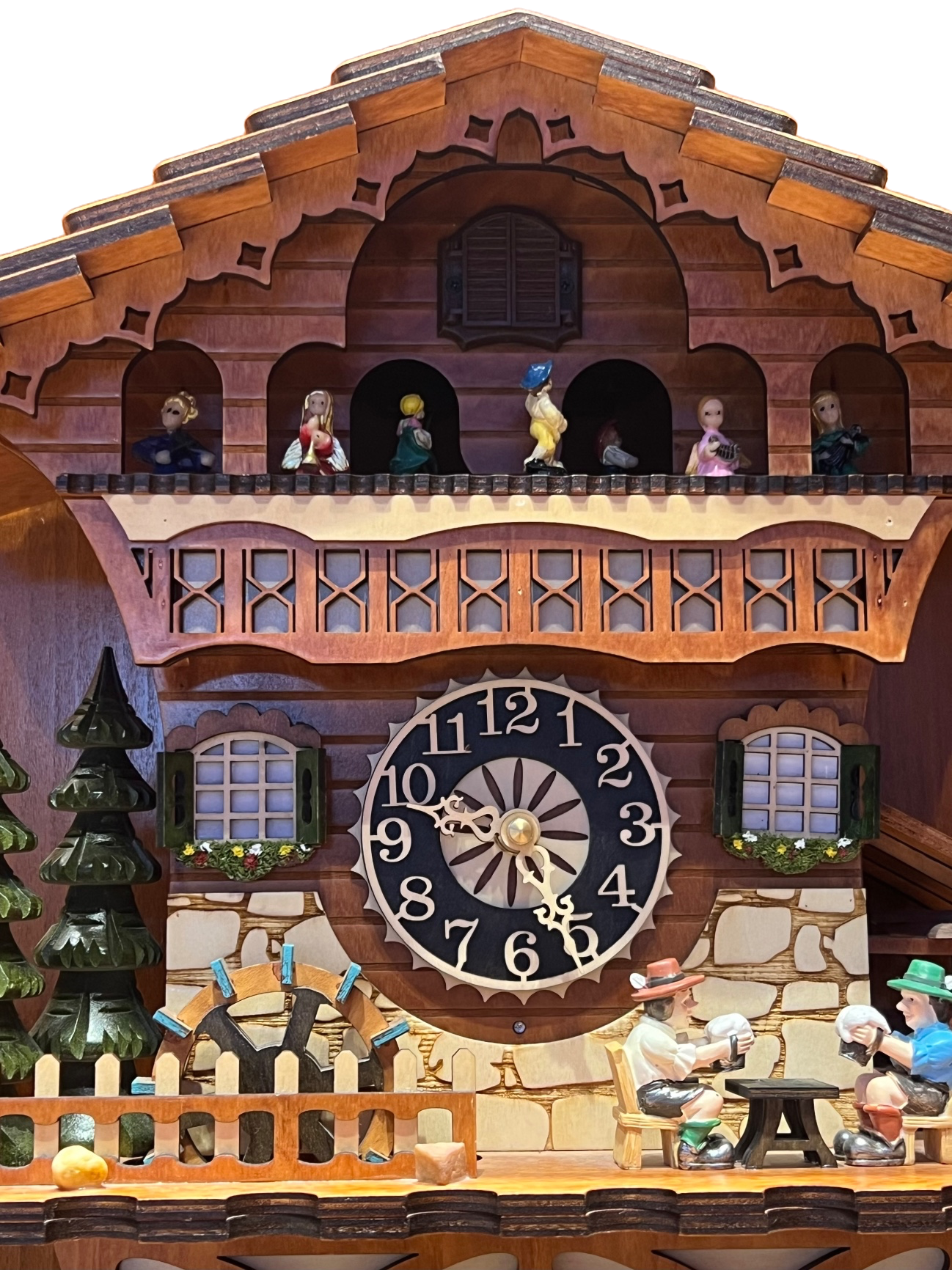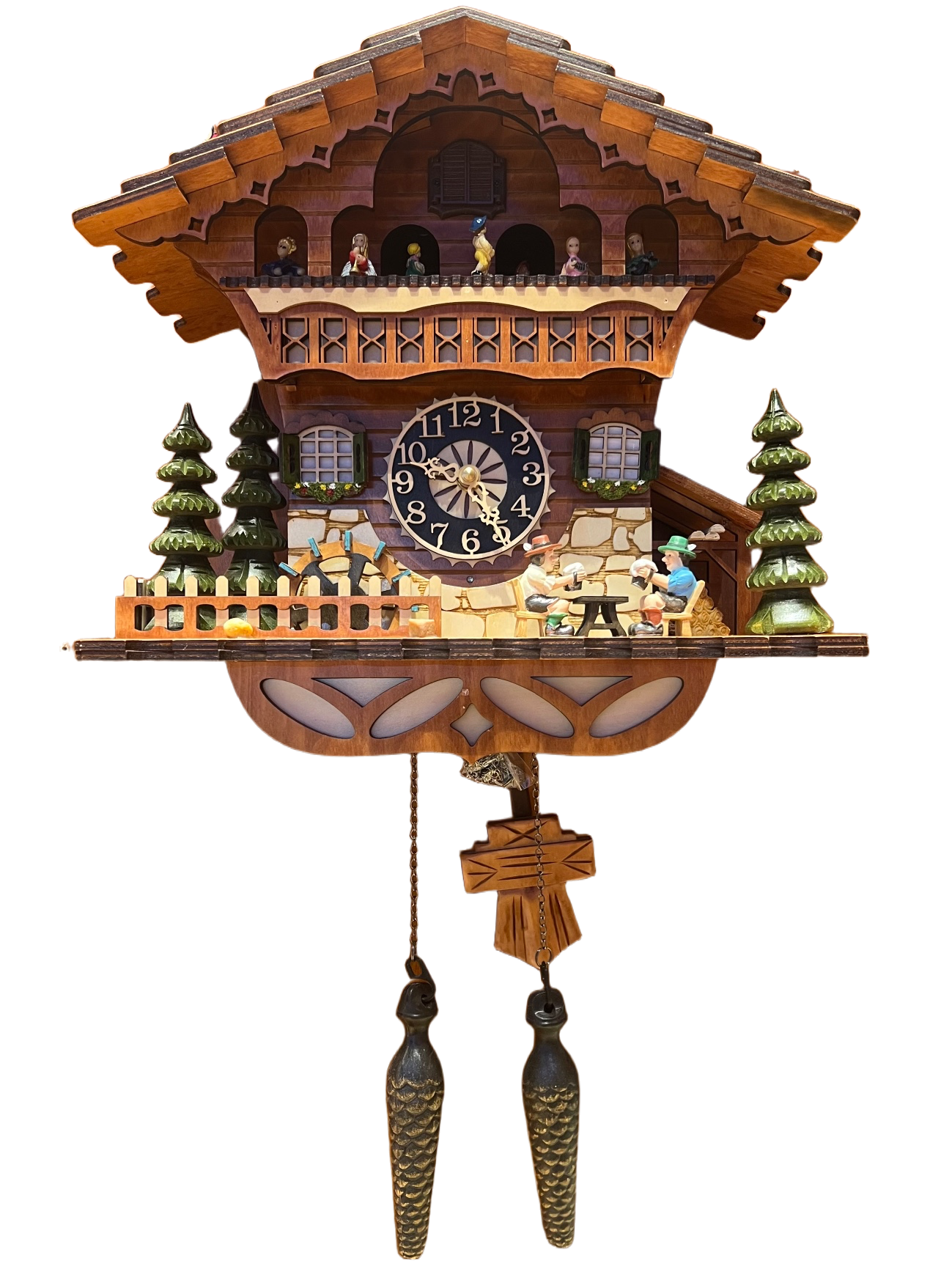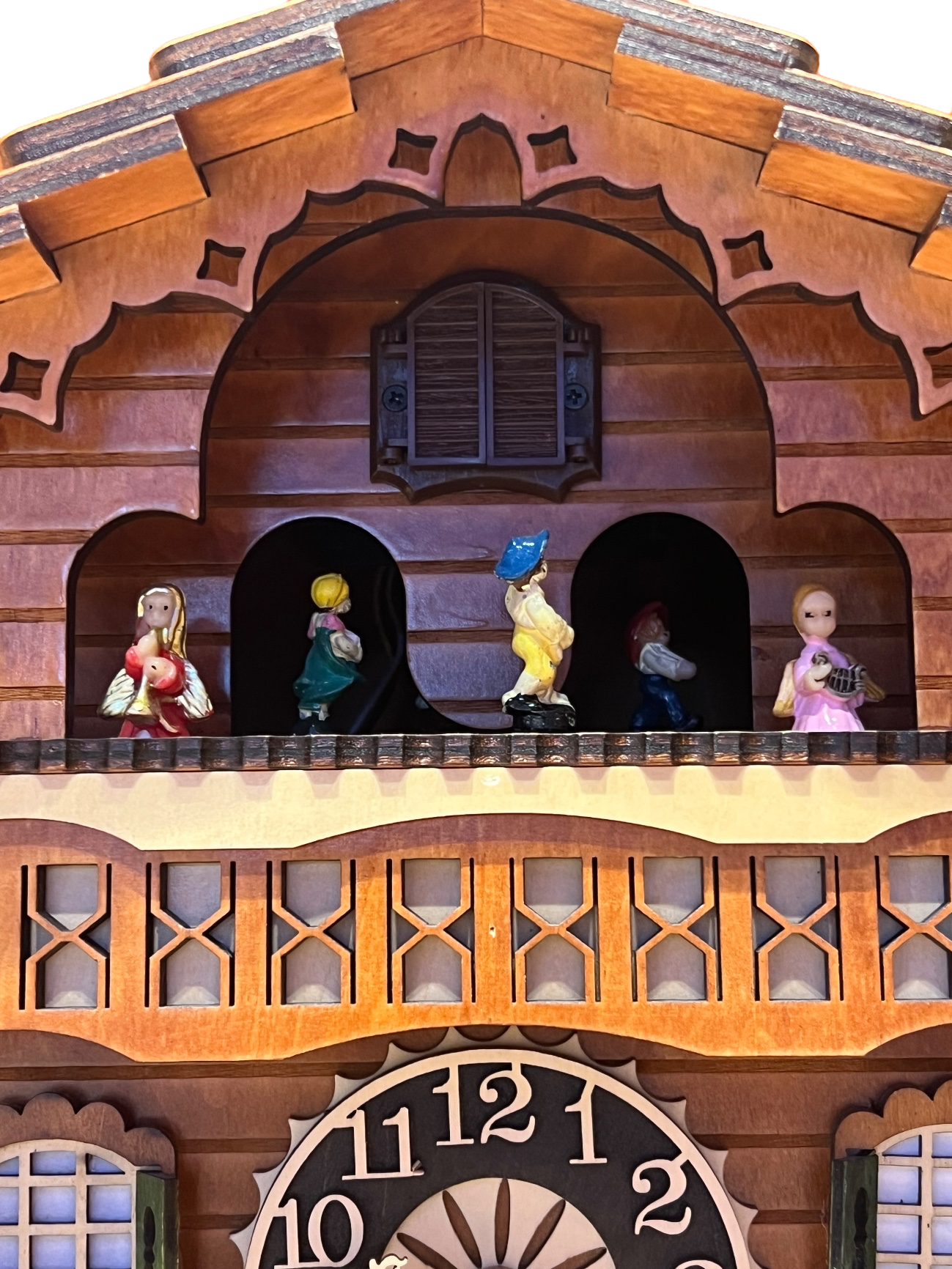 This cuckoo clock also plays a tune, and features dancing characters! (Watch the YouTube video to listen to the tune).