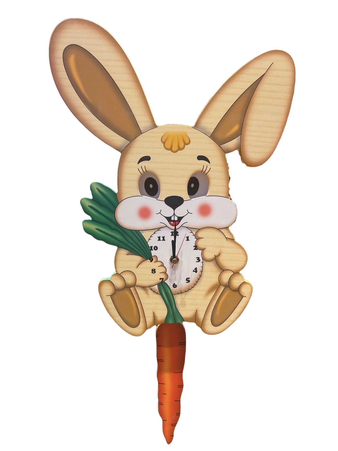 Let this cheerful bunny brighten your wall and your day! Handcrafted from natural wood and painted with soft, friendly features, this rabbit clock adds a touch of whimsy to any space. With every tick, its eyes gently move—bringing life, motion, and a smile to little ones and grown-ups alike.