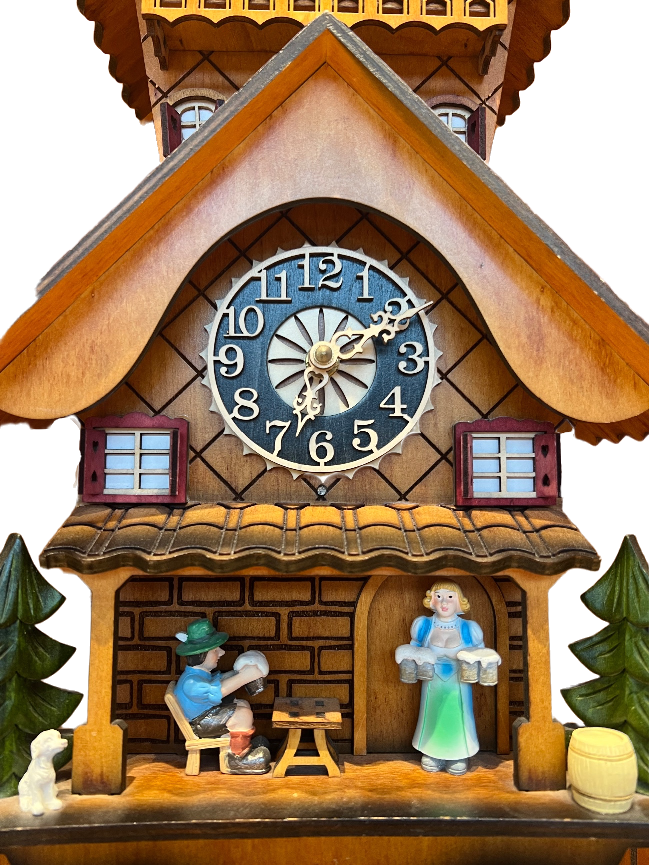 There are cuckoo sounds for every hour, with a little bird popping out to signal the time change. Each clock is in-built with light sensor control, meaning that if the room is dark, the cuckoo clock will make no noise!