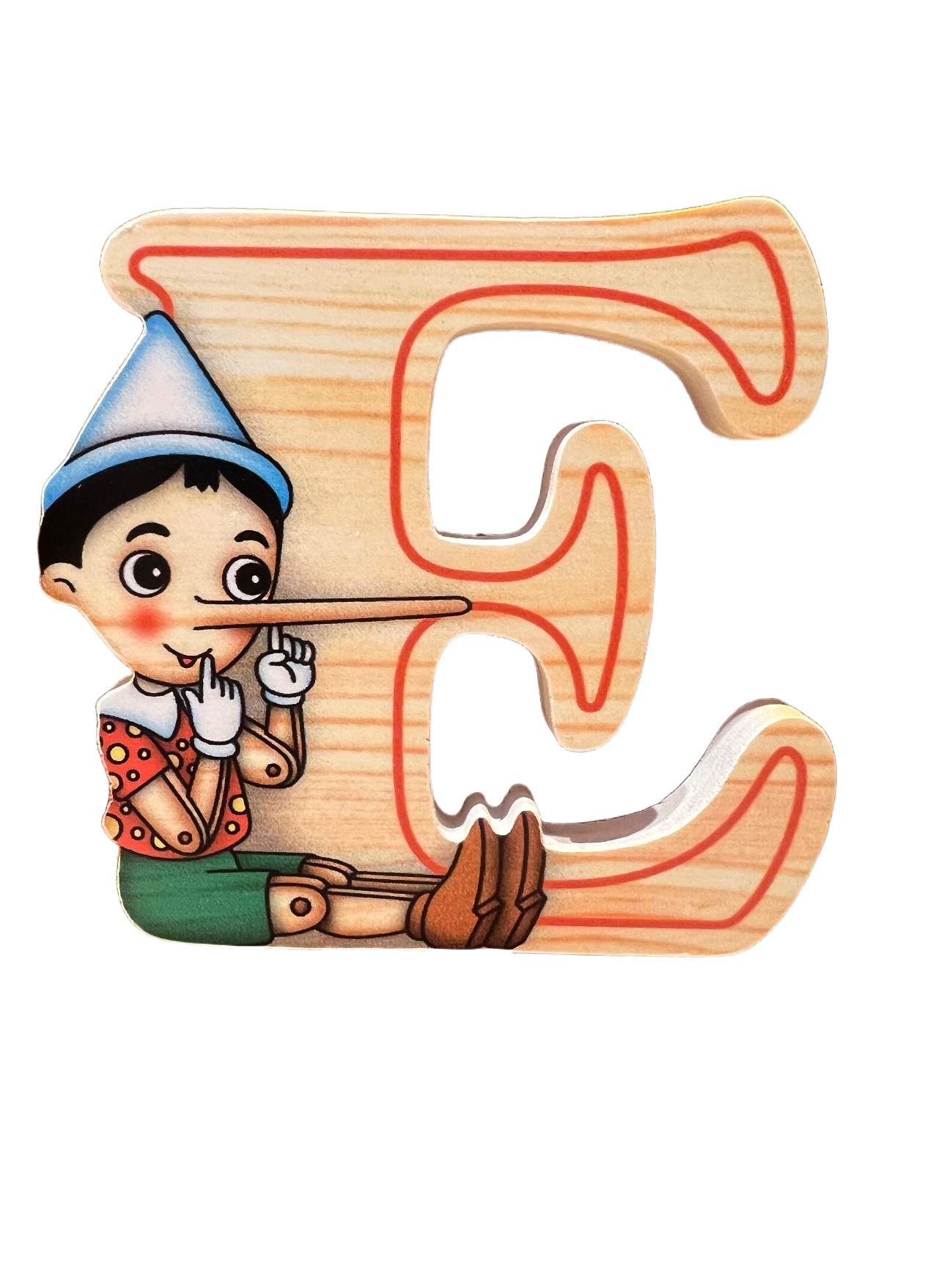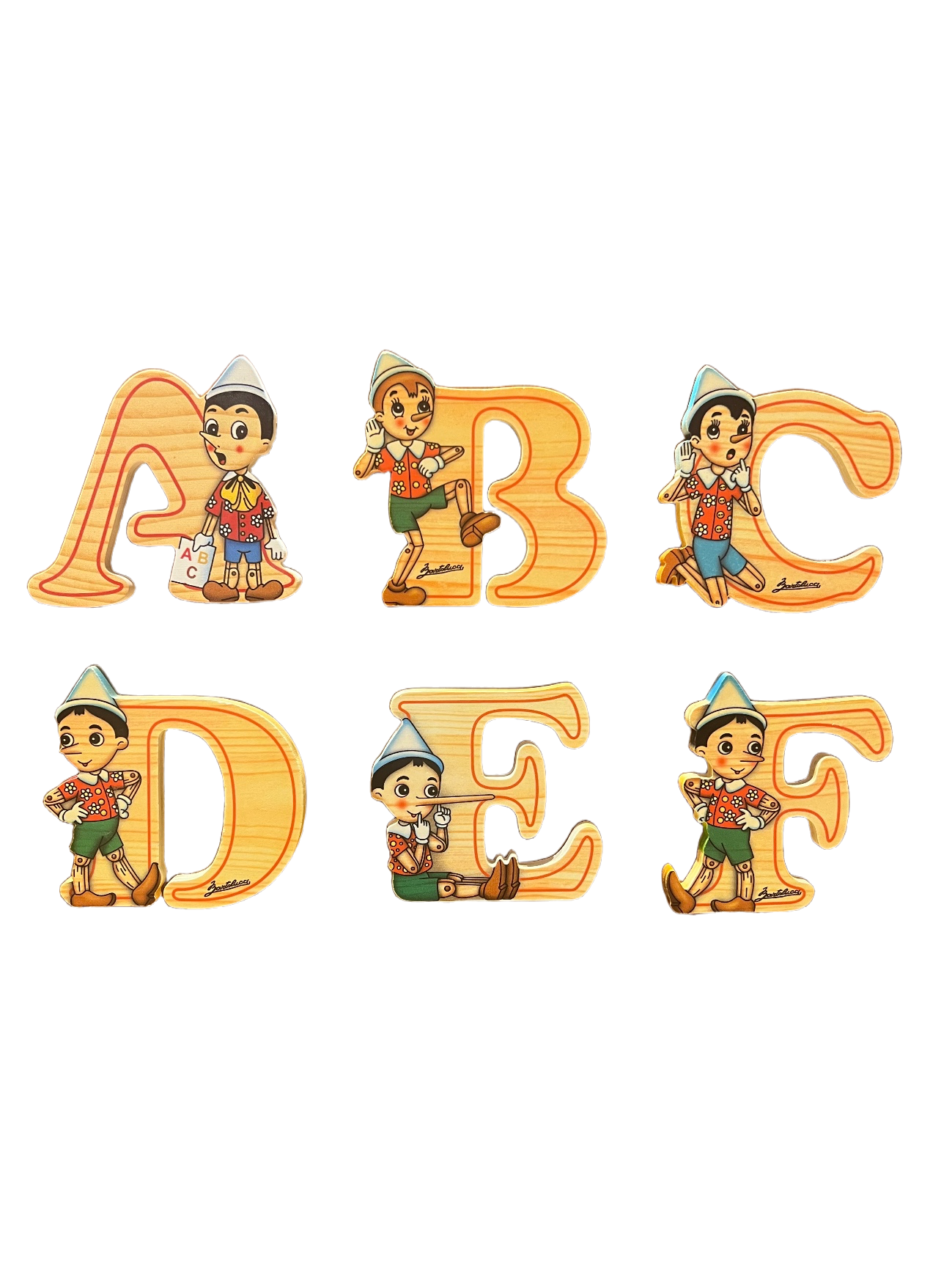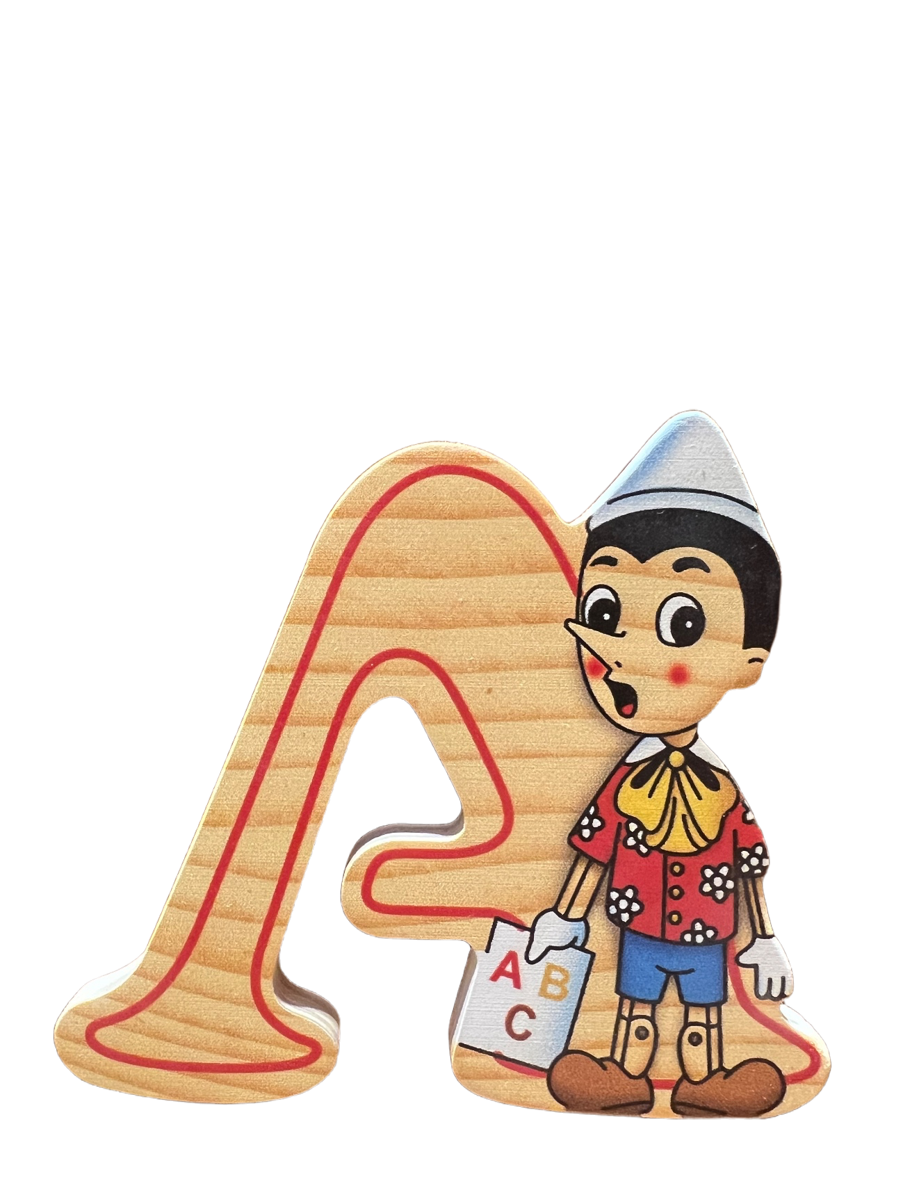 Bring your favorite names and words to life with these handcrafted wooden letters, each inspired by the whimsical world of Pinocchio. Whether used for nursery decor, door name plates, or personalized gifts, every letter features playful details and vibrant colors that echo the charm of the classic tale.
