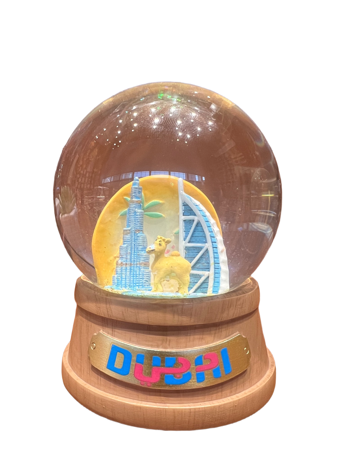 Capture the wonder of Dubai in the palm of your hand. This enchanting snowball features iconic landmarks like the Burj Khalifa and Burj Al Arab nestled in a miniature cityscape, all dusted with shimmering snow. A gentle shake transforms the desert skyline into a magical winter scene—an unforgettable keepsake from the city of innovation and luxury.