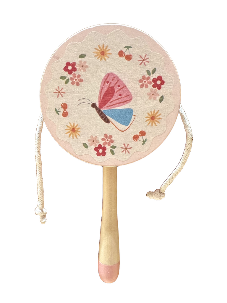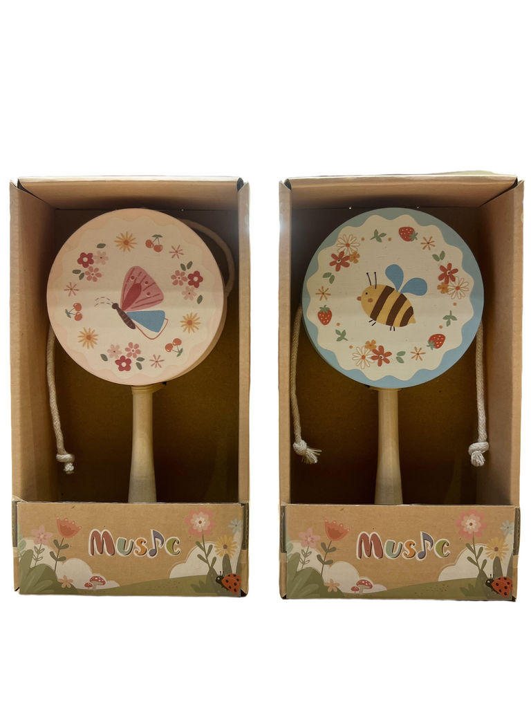 This charming rattle is shaped like a tiny drum and made from smooth, natural wood. Easy for little hands to hold, it produces a soft, pleasant sound that encourages sensory play and early rhythm exploration. Safe, durable, and perfect for babies.
