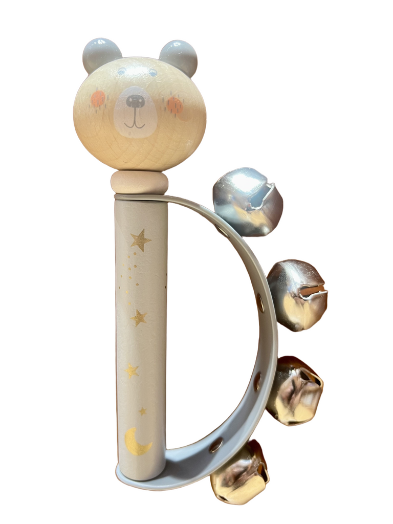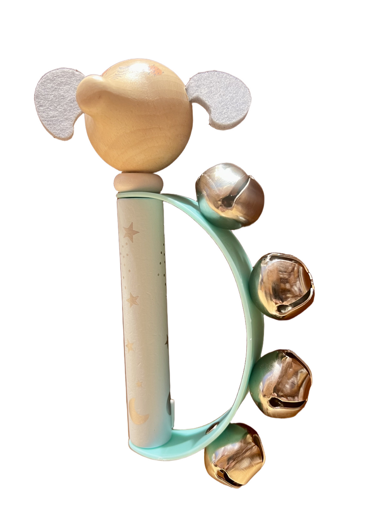 A gentle, natural rattle made from smooth wood, perfect for tiny hands. Its soft jingling sound encourages sensory play while supporting early motor skills. Safe, durable, and lovingly crafted for joyful moments.